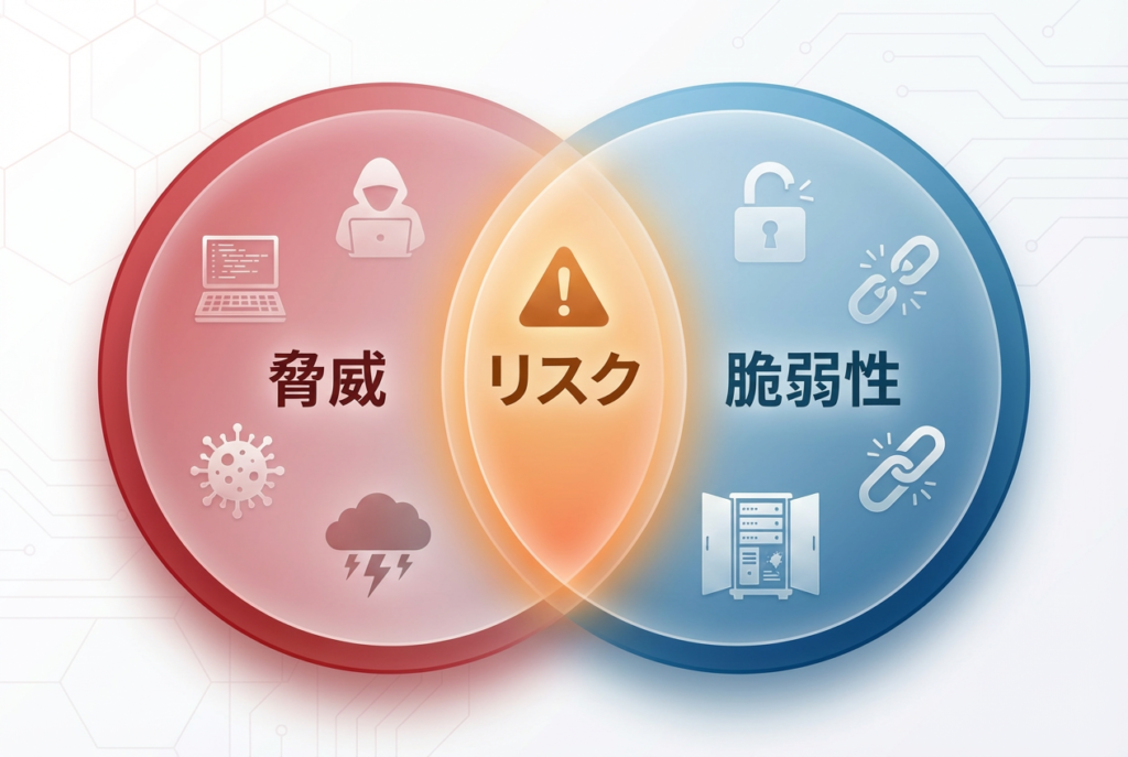 情報セキュリティリスクは、多くの場合「脅威」と「脆弱性」が重なったときに顕在化します。