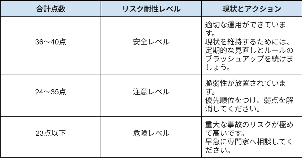 合計点数から、現在のセキュリティレベルを確認しましょう。